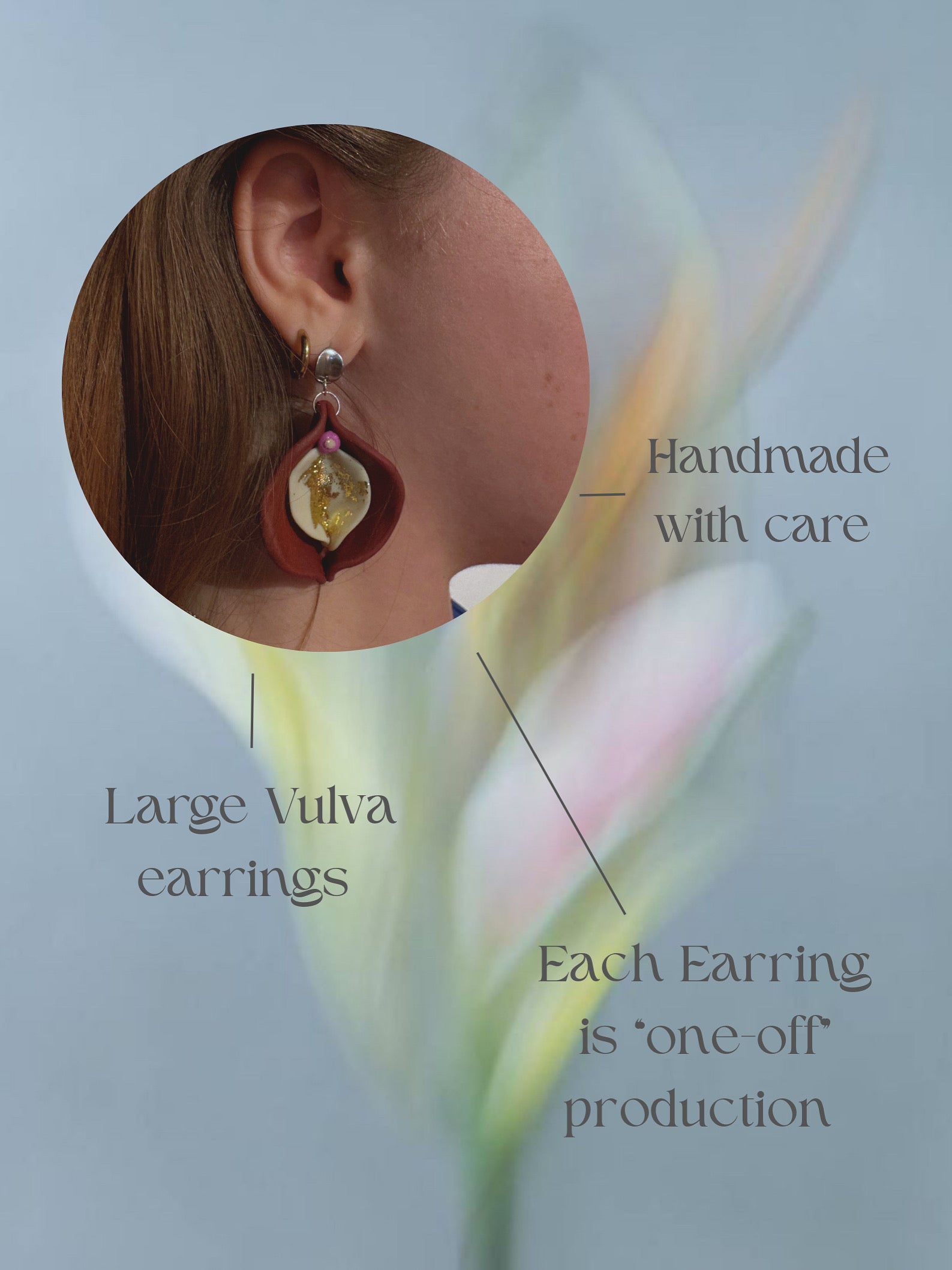 Vulva Ohrringe | Rosa, Pink mit Blattgold