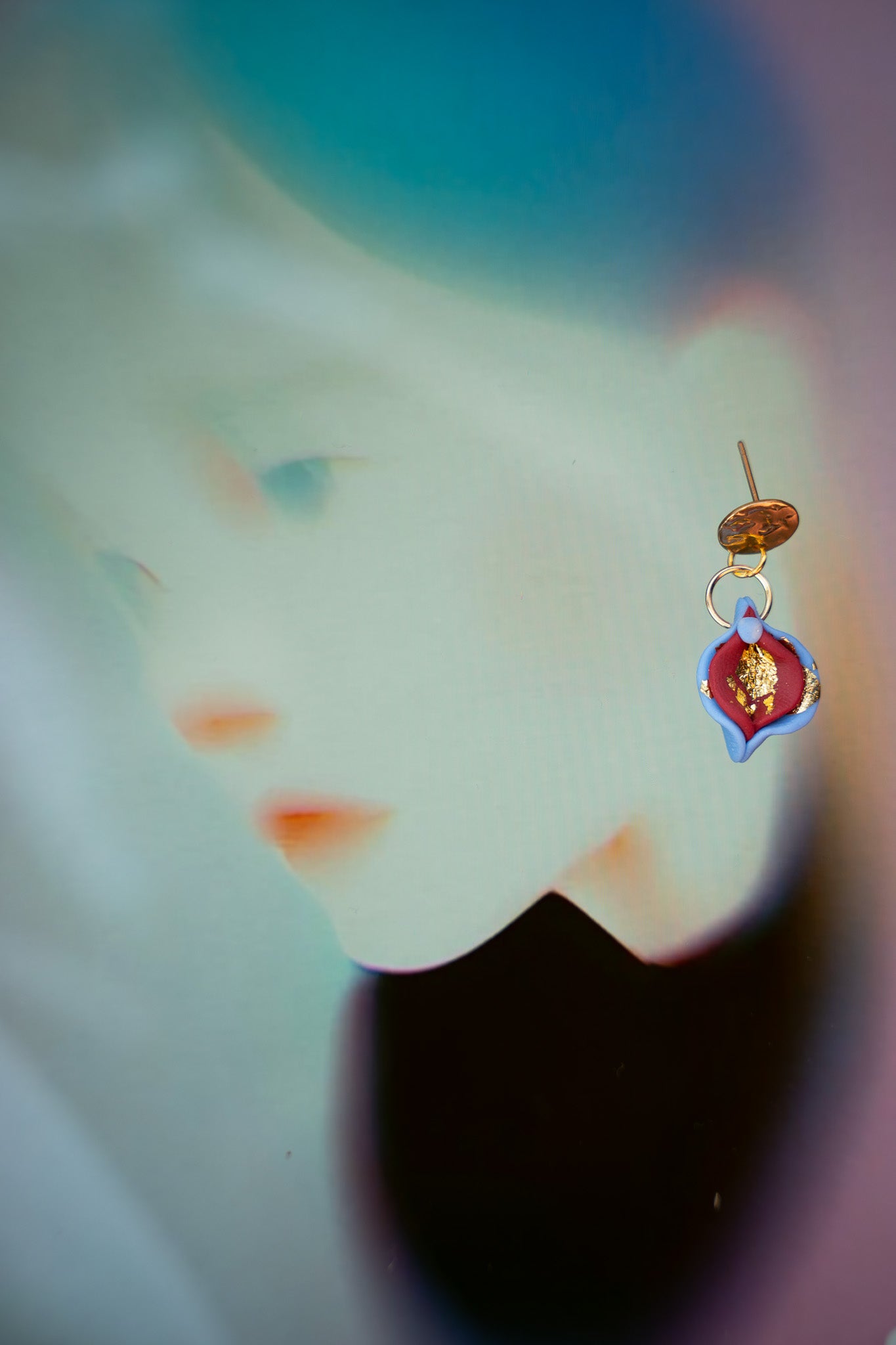 Vulva Ohrringe | Blau/Pink mit Blattgold