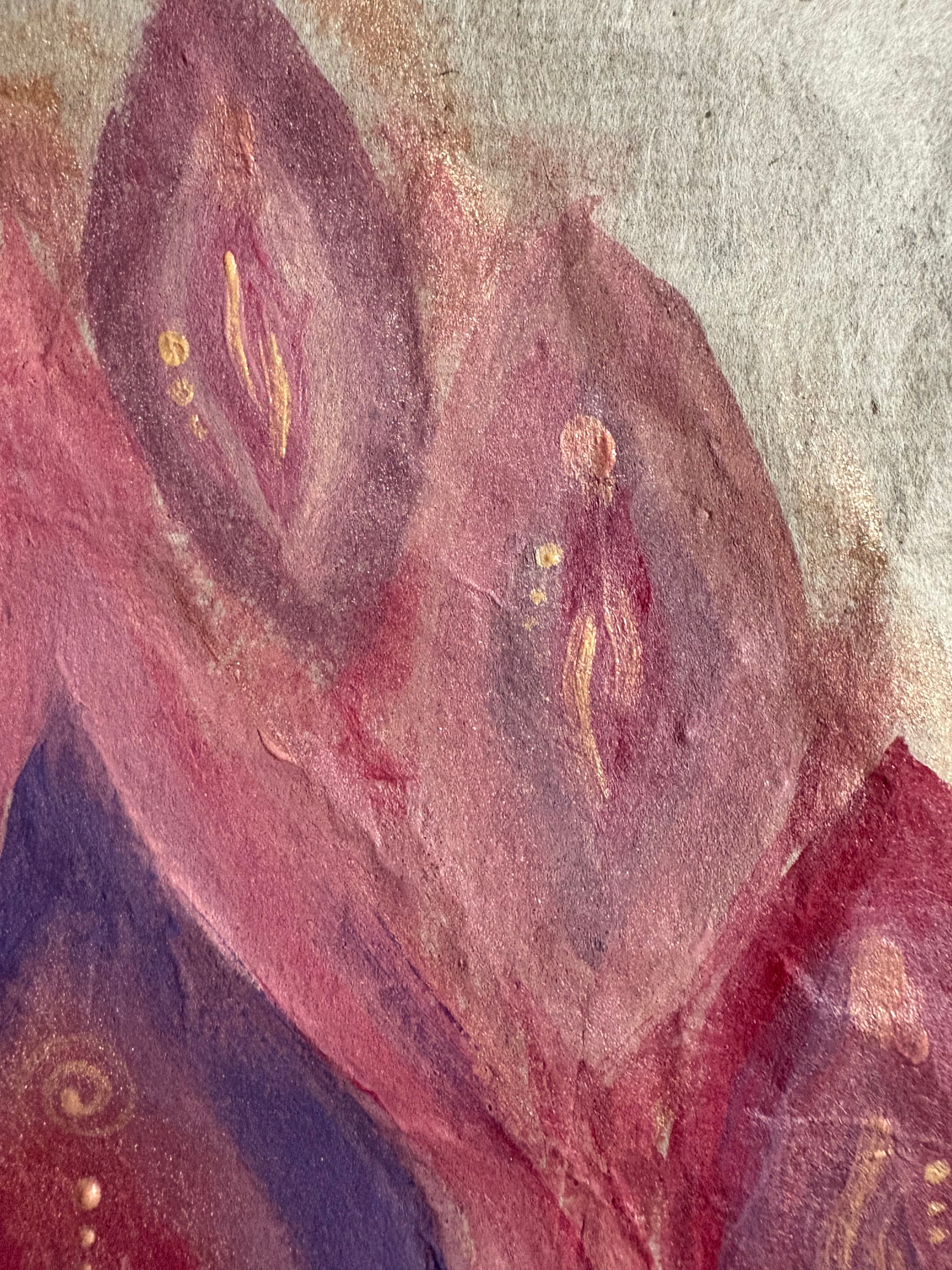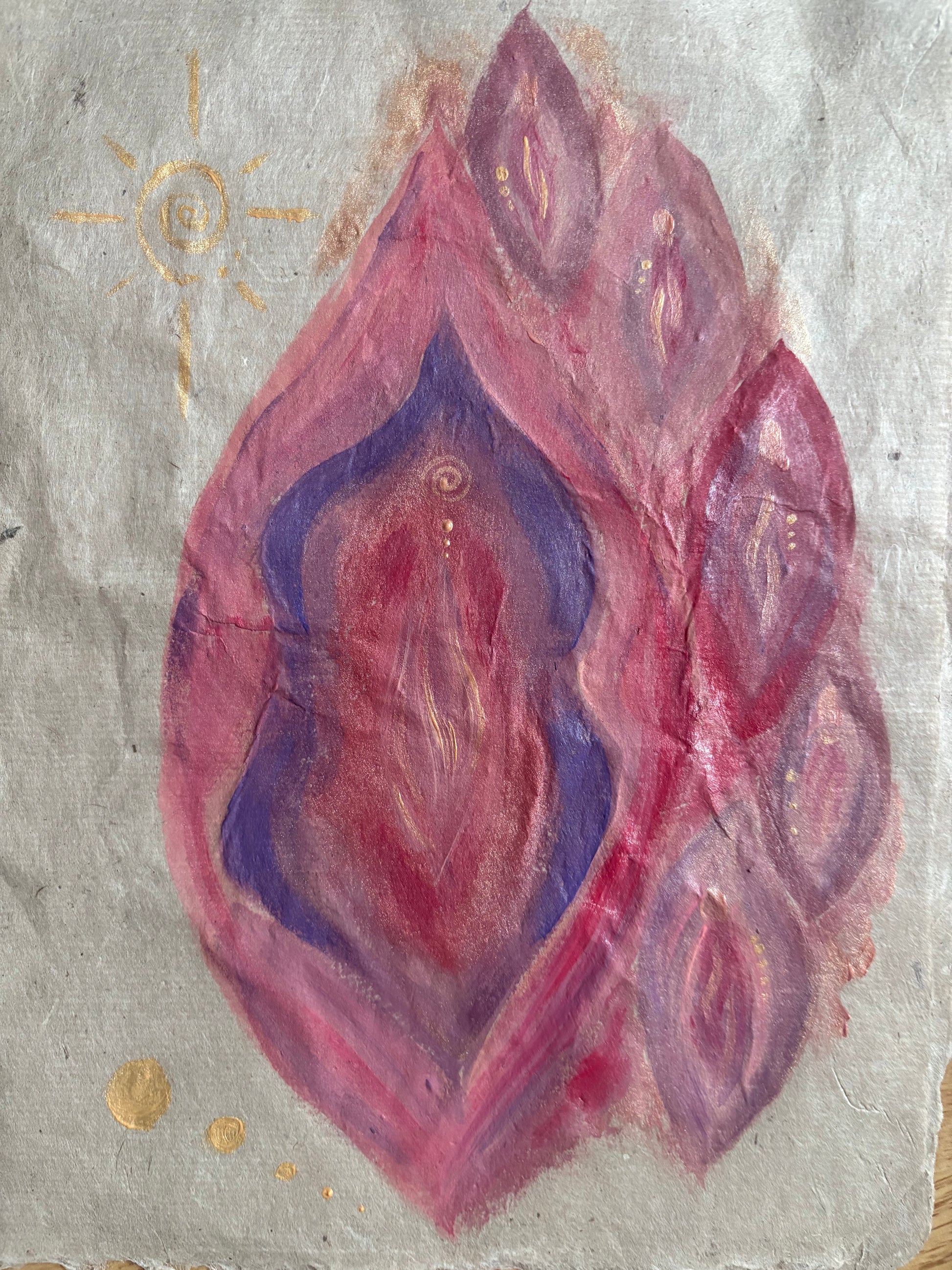 Das Gemälde „Wilde Erdenseele“ von le clitique zeigt auf hochwertigem Naturpapier mehrere eindrucksvolle Vulven. Mit seinem naturverbundenen Stil bringt das Kunstwerk lebendige Ausdruckskraft und Sinnlichkeit zusammen – perfekt, um deinem Raum eine persönliche und kraftvolle Note zu verleihen.